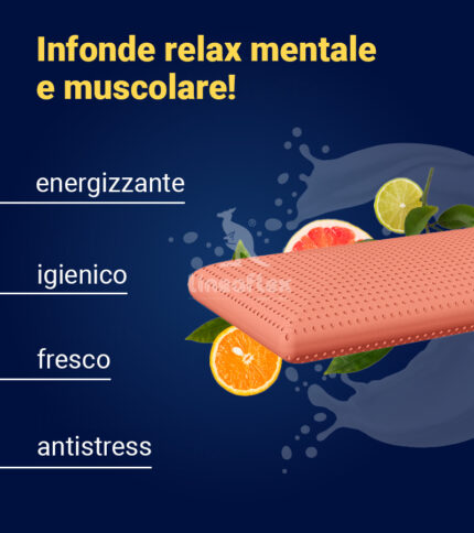 Collare ergonomico in memory foam agli olii essenziali profumati, che avvolge il collo e la testa per un sostegno corretto anche in viaggio. Grazie alla sua composizione e alla sua particolare forma offre un sostegno extra avvolgente a collo, spalle e testa. In Memory Foam arricchito da olii essenziali agli AGRUMI.