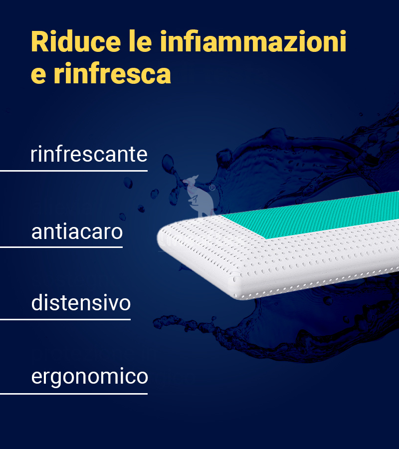 Guanciale in MEMORY FOAM con speciale inserto in BIOGEL, uno speciale gel totalmente atossico, che dona una piacevole sensazione di freschezza e garantisce una perfetta aerazione e un salutare microclima. Il Memory Foam accoglie delicatamente testa, collo e spalle, adattandosi perfettamente al profilo del corpo mentre il gel mantiene una temperatura fresca costante. Progettato per ritornare sempre alla forma originale, viene CONSIGLIATO a chi tende ad un’elevata sudorazione e desidera un cuscino di media altezza e rigidità.
