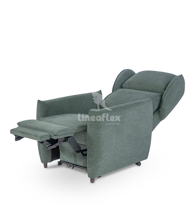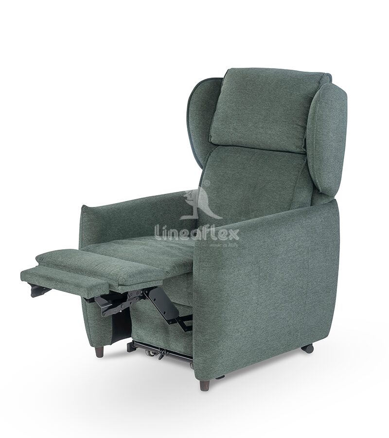 La Poltrona Relax Alzapersona CM02 proposta da Lineaflex è indirizzata a coloro che desiderano il massimo del comfort ma senza rinunciare all’estetica. Schienale super imbottito e seduta ergonomici garantiscono un appoggio preciso ed un sostegno calibrato di schiena – spalle – testa, completa di orecchie laterali per permettere un riposo in totale relax. Dotata di meccanica a 2 Motori che permettono di personalizzare le posizioni delle poltrona rendendo i movimenti di schienale e pediera completamente indipendenti, di Alzapersona funzione che permette l’ALZATA e la SEDUTA ASSISTITA della persona grazie ad un graduale SOLLEVAMENTO/ABBASSAMENTO della seduta, di Roll System pratico sistema che permette di trasportare facilmente la poltrona da una stanza all’altra, di Doppia Pediera un prolungamento di c.a. 10 cm della pediera che permette l’appoggio confortevole delle caviglie/piedi, di Seduta in Memory Foam Automodellante in grado di minimizzare i punti di pressione assicurando massima traspirabilità e l’eliminazione dell’umidità corporea, di pratico Set Copripoltrona removibile e lavabile ideali per salvaguardare la poltrona da macchie e/o usura, comprende 2 copri braccioli, 1 copri schienale, 1 copri seduta e realizzato nello stesso tessuto/colore della poltrona stessa. La poltrona CM02 è rivestita in tessuto GLOBE, anti-macchia e antiacaro. Colore personalizzabile. Certificata DISPOSITIVO MEDICO dal Ministero della Salute.